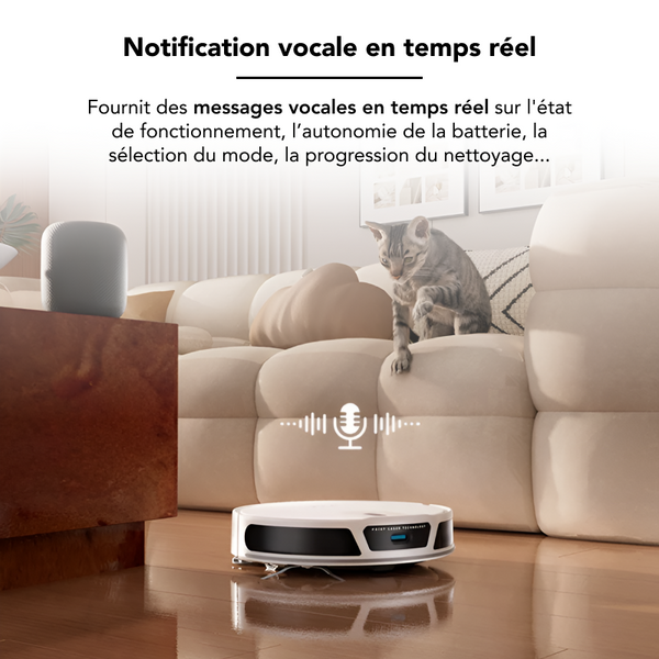 Simplifiez votre quotidien avec un aspirateur robot intelligent conçu pour un nettoyage complet et sans effort. Grâce à son aspiration puissante de 5000 Pa, il capture poussières, miettes et poils d’animaux sur tous types de sols.